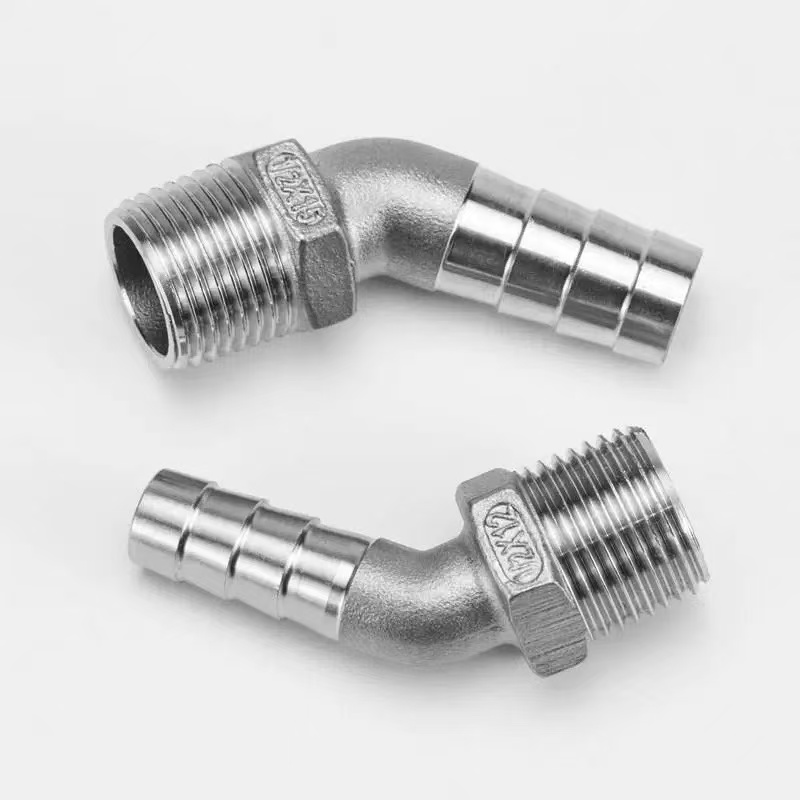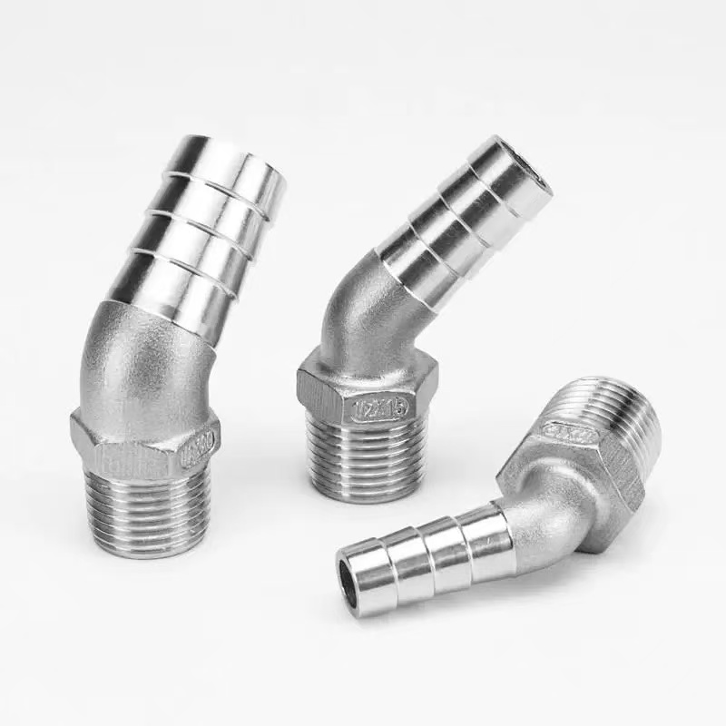 काटेरी टोक: या टोकाला अनुकूल दात कोन आणि खोली असलेली बहु-रिंग असलेली काटेरी रचना आहे. एकदा लवचिक रबरी नळी घातल्यानंतर, बार्ब्स स्वतःला रबरी नळीच्या आतील भिंतीमध्ये एम्बेड करतात आणि बहु-बिंदू यांत्रिक पकड तयार करतात. स्टेनलेस स्टीलच्या नळीच्या क्लॅम्पसह सुरक्षित केल्यावर, असेंबली 50 किलोपेक्षा जास्त पुल-आउट प्रतिरोध प्राप्त करते. काटेरी टोक आकाराच्या विस्तृत श्रेणीमध्ये उपलब्ध आहे, 3 मिमी ते 25 मिमी आतील व्यासाच्या विविध लवचिक होसेसशी सुसंगत आहे.